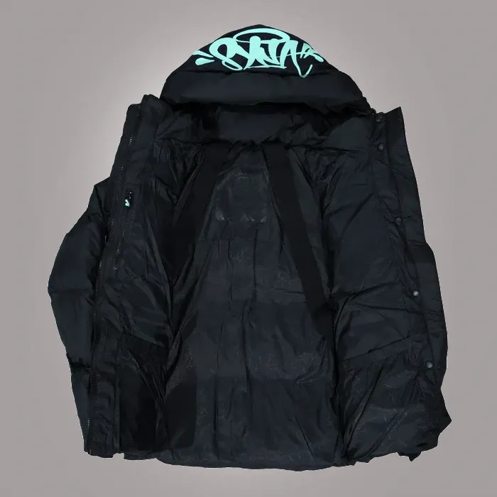 Wear the Black/Blue Synaworld “Syna Logo” Jacket to show off your sense of style. This jacket, which was designed to help you up your style ante, is more than simply a piece of clothing; it is a statement of your own style. Its exquisitely detailed design and high-quality materials create the ideal balance of comfort and refinement.The Synaworld Jacket guarantees that you stand out with effortless charm and classic appeal, whether you are hitting the streets or meeting up with friends.